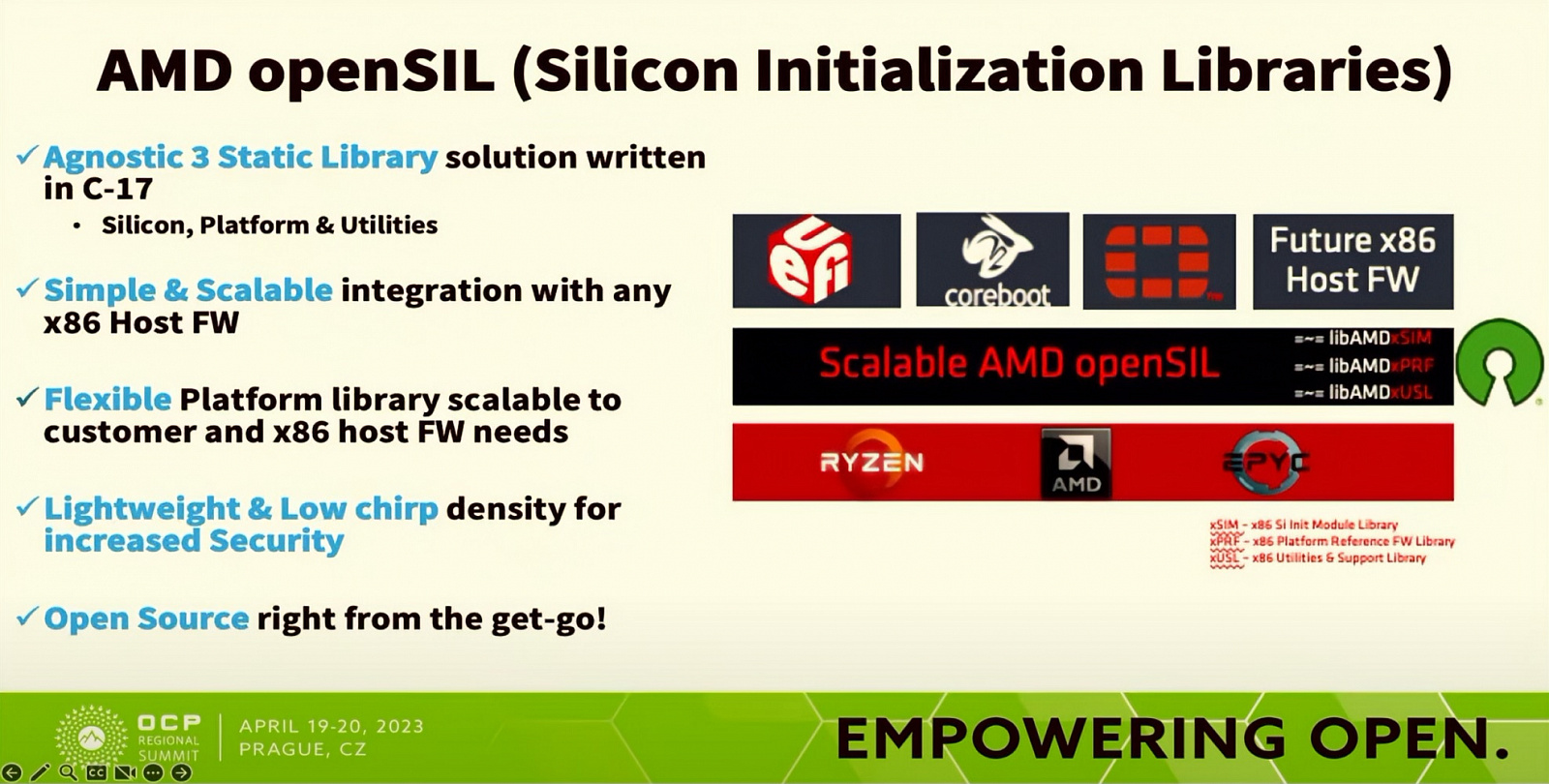 AMD openSIL основывается на решении Agnostic 3 Static Library с применением языка программирования Си, предлагает простую и масштабируемую интеграцию с любыми прошивками хоста х86, малый вес и, что самое главное, открытый исходный код. Стоит отметить, что прошивка не заменяет UEFI, а дополняет его, как и CoreBoot, oreboot, FortiBIOS и Project µ.