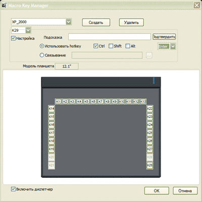 Так же в комплект драйверов входит программа для настройки функциональных клавиш на рабочей поверхности планшета. То есть вы выбираете клавишу и назначаете ей задачу, которую она должна выполнять при взаимодействии с ней.