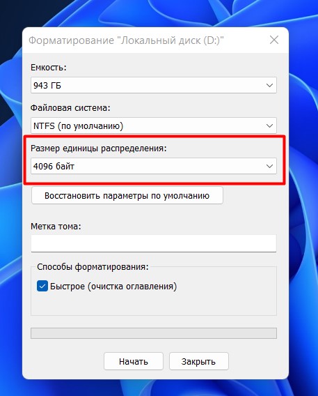 Какой выбрать размер кластера при форматировании флешки в NTFS